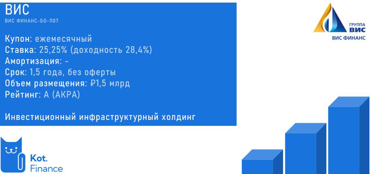 В размещении ВИС Финанс не участвуем. Финальная ставка 25,25(доходность 28,4%). Снижение на 0,75% от изначального О выпуске · Купон: 25,25% ежемесячно · Доходность: 28,4% · Амортизация: - · Срок: 1,5 года · Объем: ₽1,5 млрд · Рейтинг: А (АКРА) 👉в Кот.Финанс PRO построили карту рынка в грейде от А- до АА- со сроком 1-2,5 года Понравились выпуски Интерлизинг, Окей, Система. Можно рассмотреть Эталон Финанс Текущие размещения показывают, что: 🔘рынок вновь любит фиксы и короткий срок 🔘на вторичке есть, что купить с большей доходностью (+экономия на комиссии, т.к. участие в размещении у нас 0,15%, а вторичка 0,025%) Мы различаем, что риск Окей и ВИС разный. Но мы также понимаем, что 🦢может быть и в надежном бизнесе (Борец). Мы за разумную диверсификацию, и разумный аппетит к риску --- Спасибо, что читаете нас❤ Подписывайтесь, чтобы не пропустить новые выпуски!