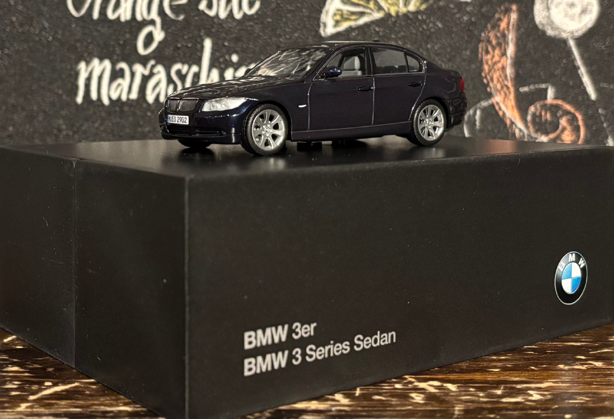 Данную модель я увидел случайно на сайте бесплатных объявлений и не смог не приобрести ее, хотя с момента обнаружения до момента покупки прошло 2 месяца. В отличии от другой модели Е90 от Minichamps, про которую вы можете прочитать здесь👇