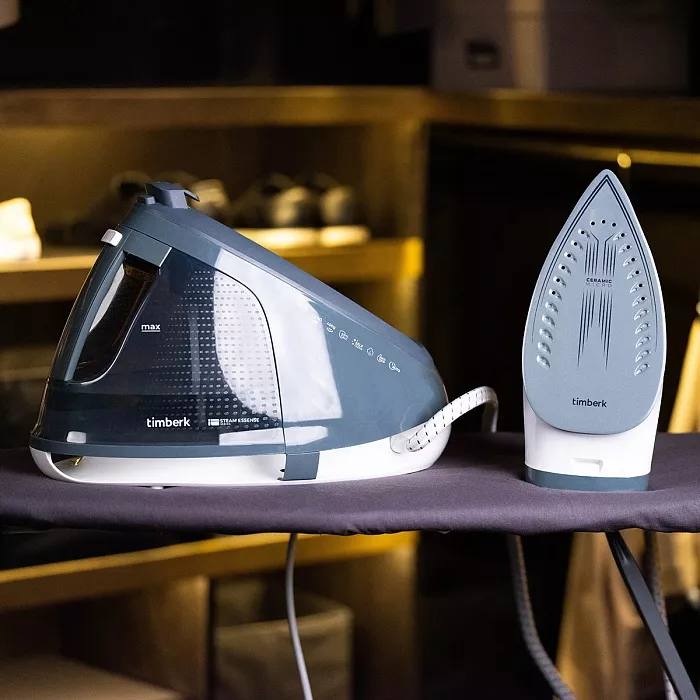 Если важно максимально быстро разглаживать даже сложные вещи, очевидный выбор — парогенератор (например, Timberk T-PSG51 в благородном сером цвете). Если же гладите редко и в небольших объемах, утюг будет удобнее и практичнее.
