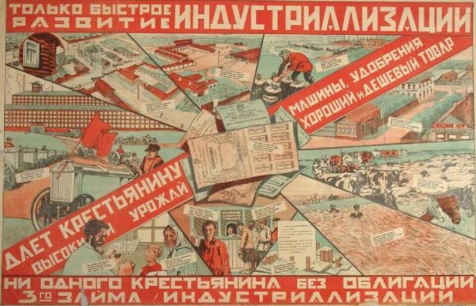 Каков был главный лозунг? «Догнать и перегнать!» Откуда брать средства? Из бюджета крестьян. Основной механизм — принудительный путь к развитию, в котором зачастую человеческие жизни становились разменной монетой.