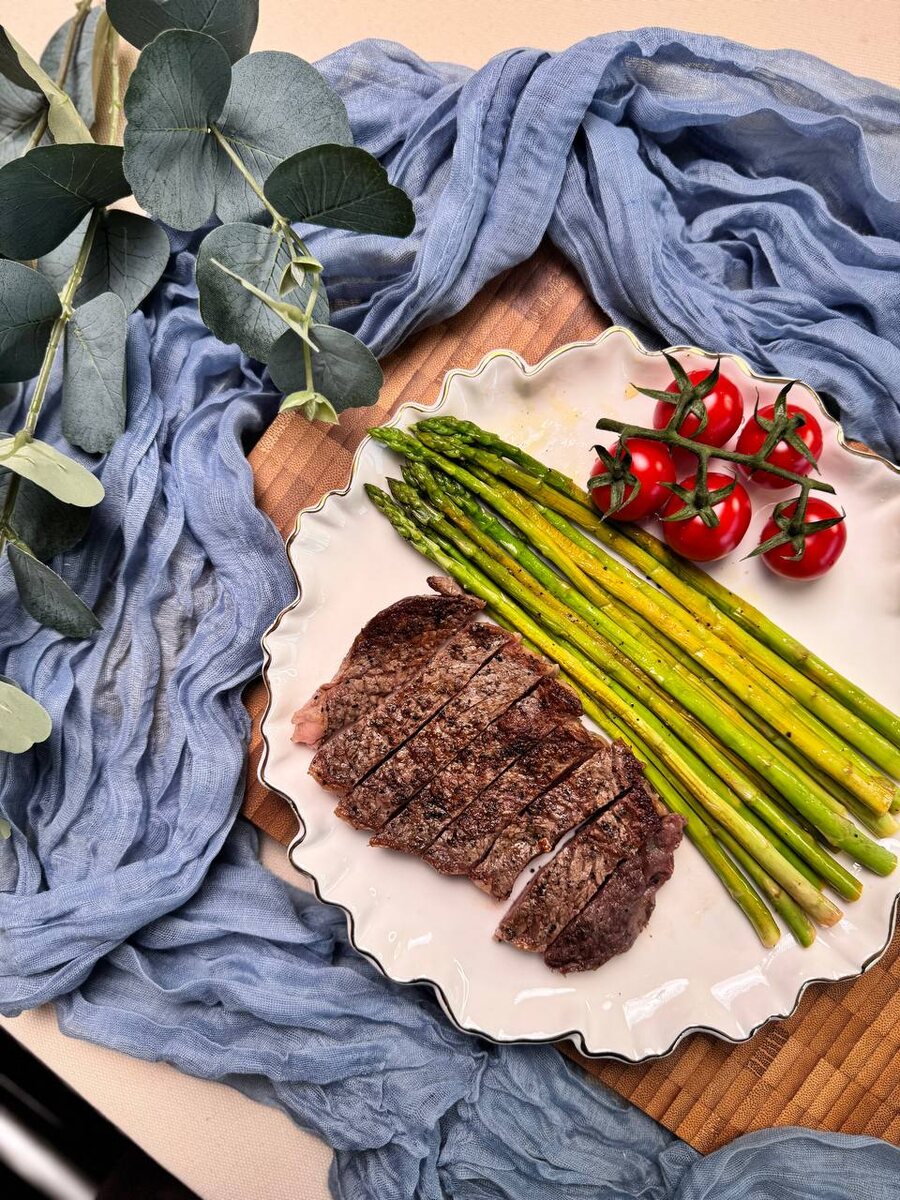 Перед весной и летом хочется легкой еды, чтобы скинуть лишние килограммы после зимних праздников. А кто-то просто любит питаться полезно. Я приготовила 7 полезных, но вкусных ужинов, которые отразятся на вашей фигуре лишь положительно! У каждого блюда приведены все граммовки, посчитаны калории, белки, жиры и углеводы. Ранее я уже выкладывала рецепты первого, второго, третьего дня. День 4 Стейк рибай со спаржей Нам понадобится (на 2 порции):