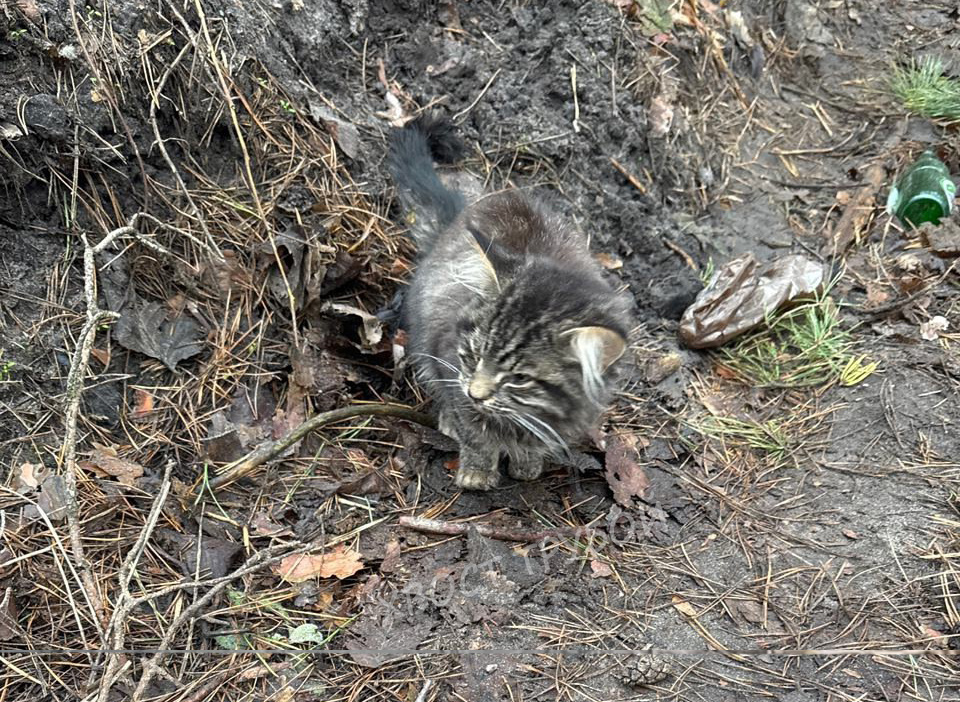 Полина спешила в гости, чтобы сократить пусть решила пройти через лес. Поселок, в котором она живет, расположен рядом с городом, но состоит преимущественно из частных домов. Посередине пролегает четырехполосная дорога и лесополоса из пахучих сосен. Когда в за спиной послышалось робкое "мяу" Полина подумала, что это какая-то птичка. Но все же остановилась и прислушалась. Мяу повторилось, только вот откуда оно раздавалось было непонятно. Вроде бы совсем рядом, но никого не было видно. На кис-кис-кис откликнулась куча веток, она зашевелилась, и от нее отсоединилась маленькая пушистая фигурка точно такого же цвета. На лесную тропинку вышел полосатый котёнок, нос и глаза его были залеплены грязью и выделениями, глаза уже почти не открывались. Малыш так обрадовался, что его позвали, он тут же подошел к ногам Полины и стал тереться о них. Совершенно не понимая, что же теперь делать с этой находкой, Полина написала нам в соцсетях и попросила помочь несчастному крохе. Пока ждала ответа, продолж