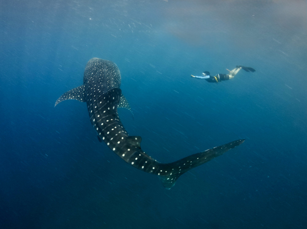 С китовой акулой.