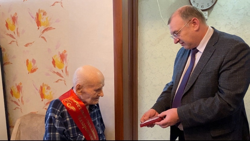 В поселке Преображенском в торжественной обстановке глава Назаровского района вручил ветерану Михаилу Герголенко юбилейную медаль «80 лет Победы в Великой Отечественной войне, а также нагрудный знак «Почетный гражданин Назаровского района».