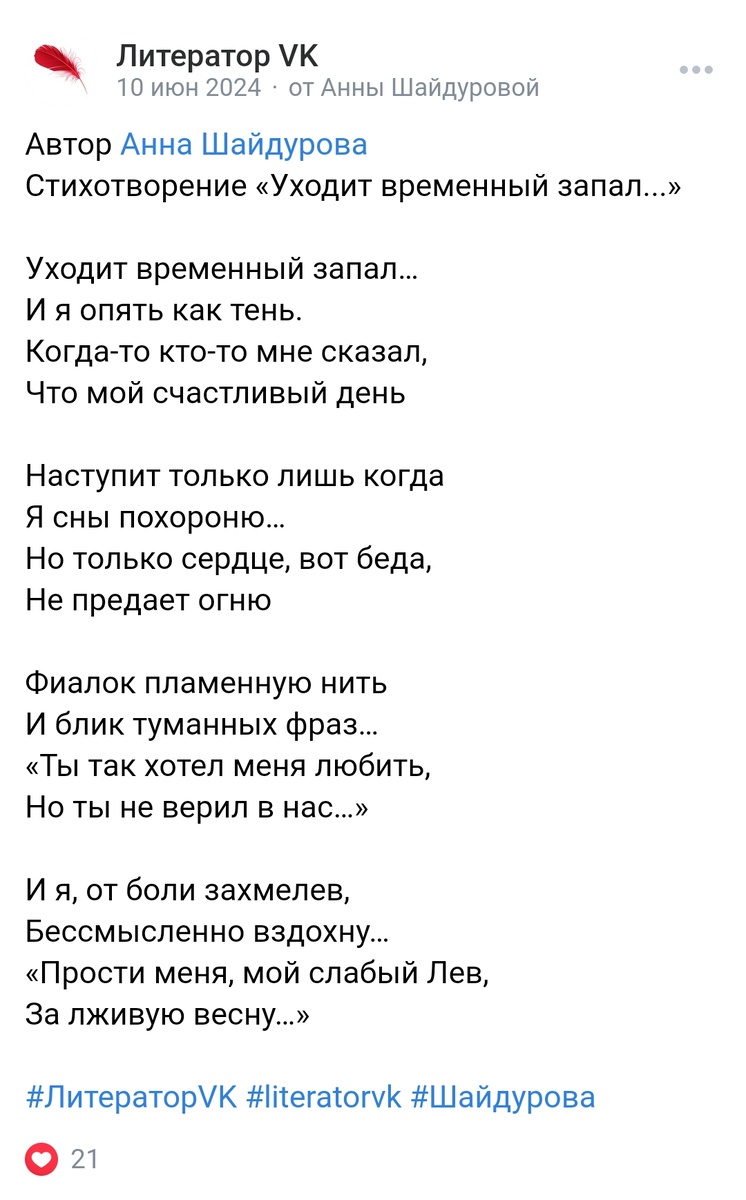 Поговорим сегодня о литературных рекордах, а конкретно о моих. Решила я поведать вам о том, какой мой стих самый грустный, а какой самый радостный, ну и т.п. В общем, начнем. Самый грустный мой стих – «Уходит временный запал». Это стих о расставании и он по праву является самым печальным в моей коллекции, ведь мало того что пара рассталась, так еще и весна у них была «лживой». Самый грустный мой рассказ – «Крылья бабочки». Это очень печальный рассказ о непростой судьбе девочки из приюта, которая мечтала стать балериной, а что с ней случилось, выможете узнать, прочитав рассказ. Он кстати есть у меня на странице в Дзене. Самый радостный мой стих – «Небо из дождя строит радугу». Стих простаки пронизан радостью и счастьем. В нем рассказывается о счастливой девушке, которая любит и любима. Самый веселый мой рассказ – «Мир наоборот». Рассказ очень позитивный, поэтому именно его решила отнести в эту рубрику. Самый романтичный мой стих – «А ты и звезды вдруг сделал ярче». Считаю этот стих самы