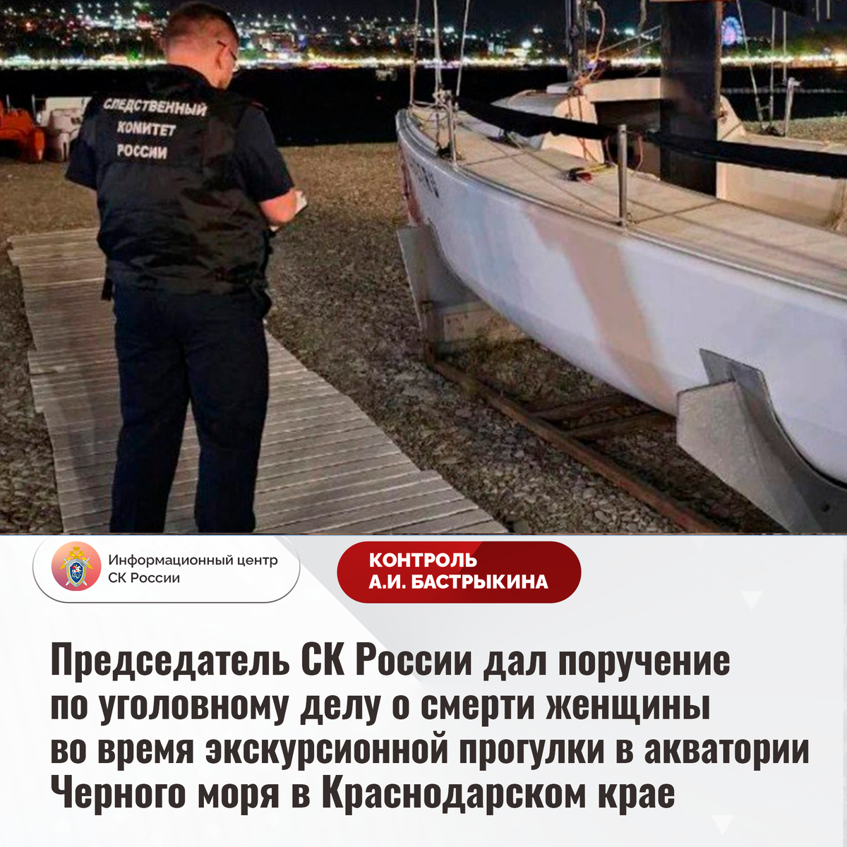 Председатель СК России дал поручение по уголовному делу о смерти женщины во время экскурсионной прогулки в акватории Черного моря в Краснодарском крае В Информационный центр СК России поступило обращение о несогласии с ходом установления обстоятельств смерти женщины в акватории Черного моря в Геленджикском районе Краснодарского края. В июле прошлого года во время экскурсионной прогулки капитан спортивной парусной яхты не справился с управлением, что привело к опрокидыванию судна и падению находившихся на борту людей в воду. При этом фигурантом мер к организации эвакуационных мероприятий и оказанию пассажирам помощи принято не было, из-за чего супруга заявителя утонула. Указанное происшествие получило распространение в СМИ. В Западном межрегиональном следственном управлении на транспорте СК России по данному факту расследуется уголовное дело. Председатель Следственного комитета Российской Федерации Александр Иванович Бастрыкин поручил руководителю Западного межрегионального следственног