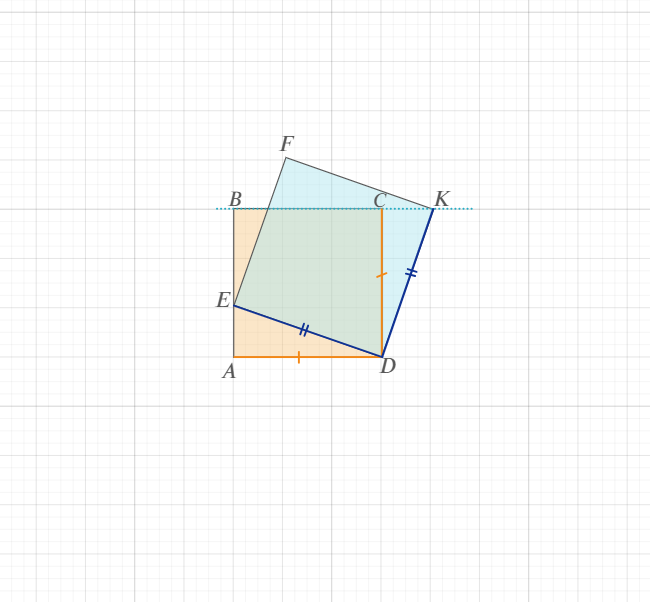 9. ★★☆ Квадраты ABCD и DEFK имеют общую вершину, причём точка E лежит на стороне AB. Верно ли, что точка K лежит на прямой BC?