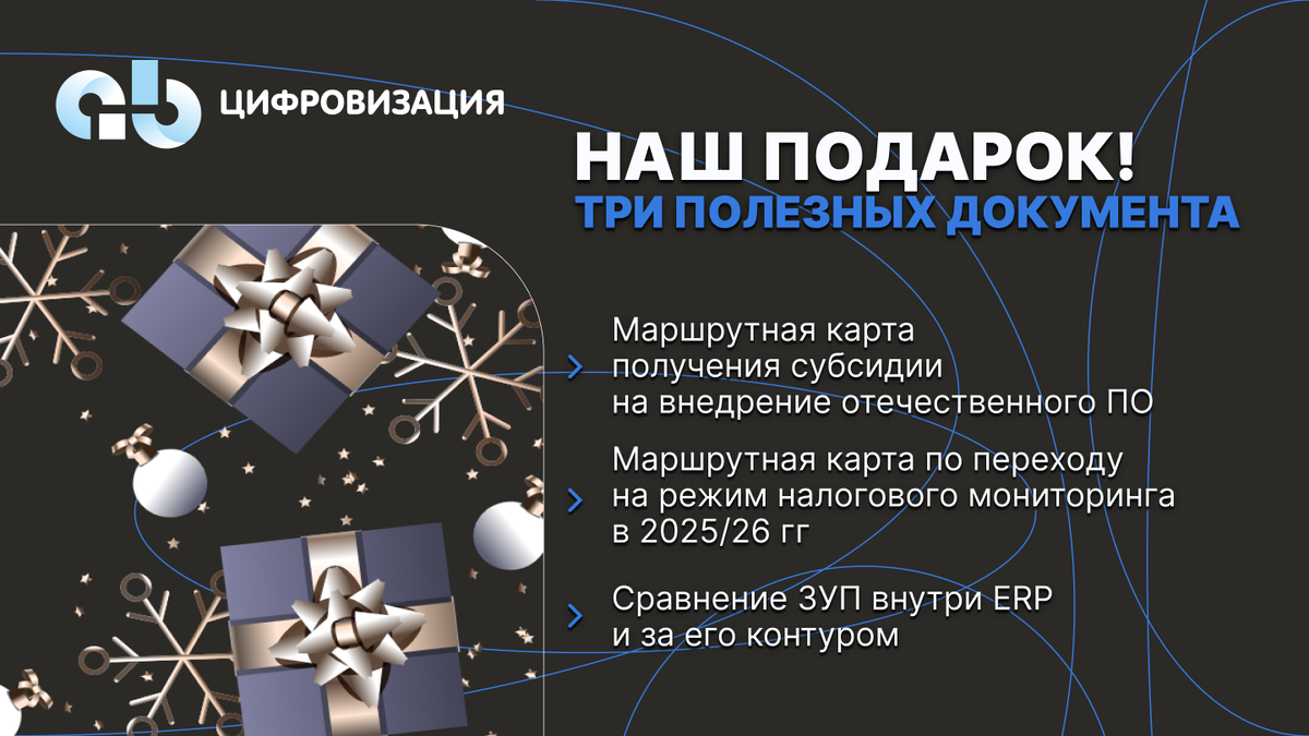 Другие полезные материалы по теме внедрения «1С:ERP», «1С:УХ», «1С:ЗУП» и других продуктов «1С» → Проблемы перехода с иностранной ERP на «1С:ERP» → Внедрить «1С:ERP» для регламентированного и раздельного учёта (по ГОЗ) без запуска системы в производстве → Зарплата в ГОЗ: делимся лайфхаками → Тормозит 1С. В чём проблема? → Что нужно предприятию: WMS или «1С:Склад»? → В 1С:УХ нет «Заявки» → Как считать себестоимость, когда элемент сбора затрат – это единица техники? ☎️ Мы на связи: +7 (495) 120-40-02 → Сайт → Телеграм → ВКонтакте → Дзен → Rutube → Youtube #аибцифровизация #1сзуп #налоговыймониторинг #российскоеПО #субсидии