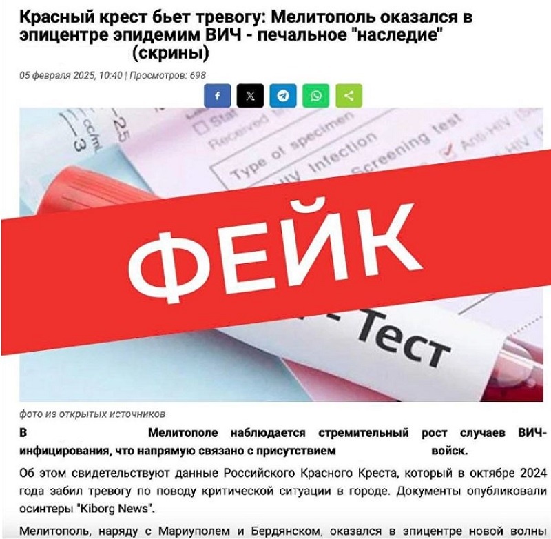 В Российском Красном Кресте опровергли распространяемые якобы ими же сведения о возникшей вспышке ВИЧ-инфекции в Мелитополе и других городах Запорожской области. Одно из СМИ предупредило о стремительном росте случаев заболевания этой заразой в столице подконтрольной РФ части региона, заявив, что ситуация «критическая». Руководство организации заявило, что появившаяся информация в Сети не соответствует действительности. «Мы не ведем мониторинг заболеваемости в этом или других городах и никогда не публиковали подобных отчетов. Все «документы» и «скриншоты», фигурирующие в материале, являются подделкой», – отметили в РКК. Кроме того, там напомнили, что похожие фейки уже давно циркулируют в медиапространстве, поэтому призвали местных жителей «внимательно относиться к источникам информации и не распространять ложные сведения». Напомним, ранее в Сети разоблачили украинский фейк о краже экспонатов из музея-заповедника «Каменная могила» в Мелитополе. Василий Карамелин