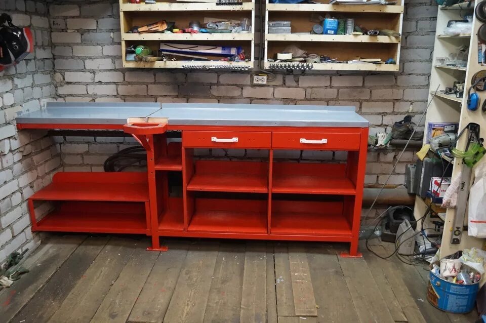 Всем привет дорогие друзья, в этой статье мы рассмотрим что должно быть в первую очередь в домашней мастерской Я думаю многие согласятся со мной что стол это одна из самых главных вещей в любой мастерской, ведь на нем мы и будем паять, чертить, резать и т. д. одним словом работать. Для начала необходимо будет купить первый набор инструментов (молоток, плоскогубцы, угольник и т. д.) Вероятнее всего, со времен у вас будет появляться новый инструмент который нужно будет где-то хранить, именно для этого вам нужны полки и ящики под инструменты На этом 1 часть подошла к концу, всем огромное спасибо за просмотр!