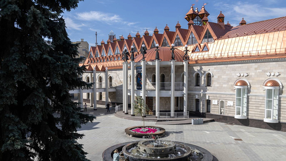 Здание построили в стиле эклектики. Вытянутые арочные окошки выдают влияние венецианского стиля. Одновременно в архитектуре проявляются отголоски сталинского ампира - портики и колонны. Такое сочетание стилей объясняется тем, что в процессе строительства театра объединили два здания – Дом профсоюзов (стоявший на фундаменте старинной гимназии) и соседний жилой дом. Кстати, его жильцов ради столь важного события пришлось выселить.