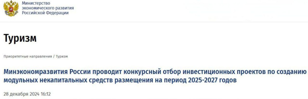 В конце 2024 года Министерство экономического развития России объявило о начале конкурсного отбора инвестиционных проектов, направленных на создание модульных некапитальных средств размещения на период 2025–2027 годов. Цель программы – расширить туристическую инфраструктуру, повысить качество услуг и стимулировать приток туристов в регионы. Ниже – ключевые моменты о том, как принять участие, какие документы потребуются и на что обратить внимание.