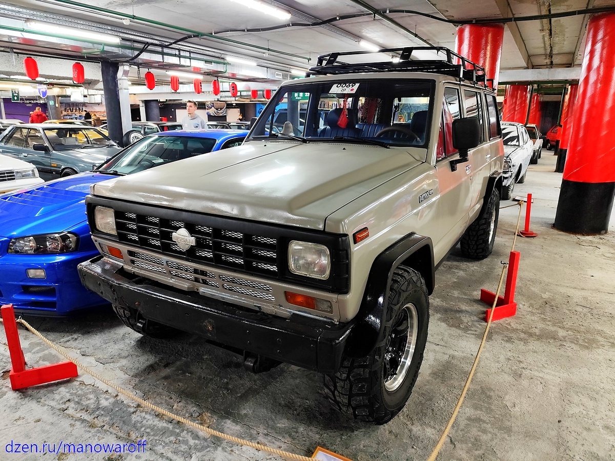 Музейный экземпляр принадлежит к третьему поколению, производство которого стартовало в конце 1979 года. Как видите, это длиннобазная пятидверная версия. Оснащались Патролы данного поколения тремя движками - рядной бензиновой шестеркой объемом 2.8 литра, а также двумя дизелями объемом 3.3 литра, один из которых был с турбиной. Трансмиссии, в основном, были 4/5-ступенчатыми механическими. Лишь на автомобилях с бензиновым движком был доступен 3-ступенчатый автомат. Внутреннее оснащение весьма спартанское - никаких электрорегулировок, никакого центрального замка, никакой музыки... В общем, бедненько, но чистенько. Лишь топовые комплектации могли похвастать наличием ГУРа и кондиционером (остальные водители качали руки и довольствовались печкой).