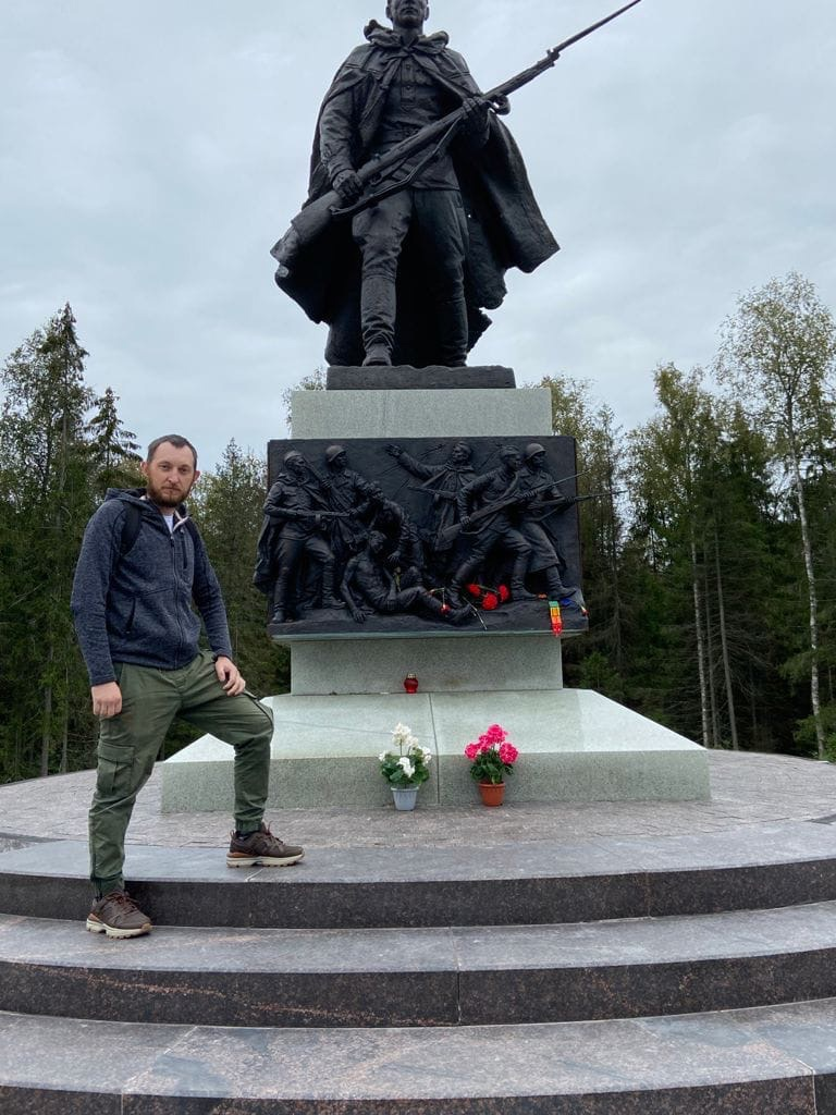 Установлен на 561-м километре трассы «Нева» в рамках празднования 75-летия Победы в Великой Отечественной войне. Место для мемориала выбрано не случайно — в Мясном Бору в Новгородской области бойцы Волховского фронта сдерживали наступление немецких войск. В 1942 году здесь проходили ожесточённые сражения. Памятник в виде образа воина-защитника высотой в 3 метра выполнен творческим коллективом Студии военных художников им. М.Б. Грекова.