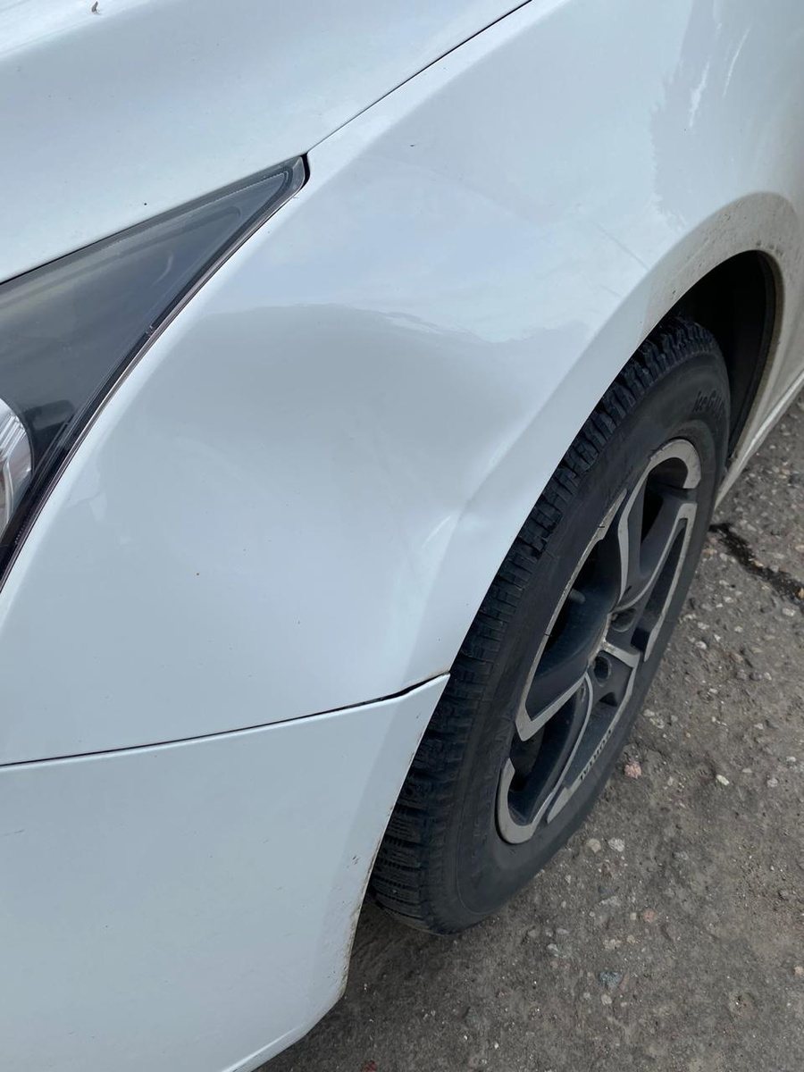 в передней части крыла автомобиля. С успехом выполнили ремонт вмятины без покраски. Выправили металл, краску сохранили на 100%, как была. На все вопросы по ремонту с удовольствием ответим по телефону или WhatsApp: