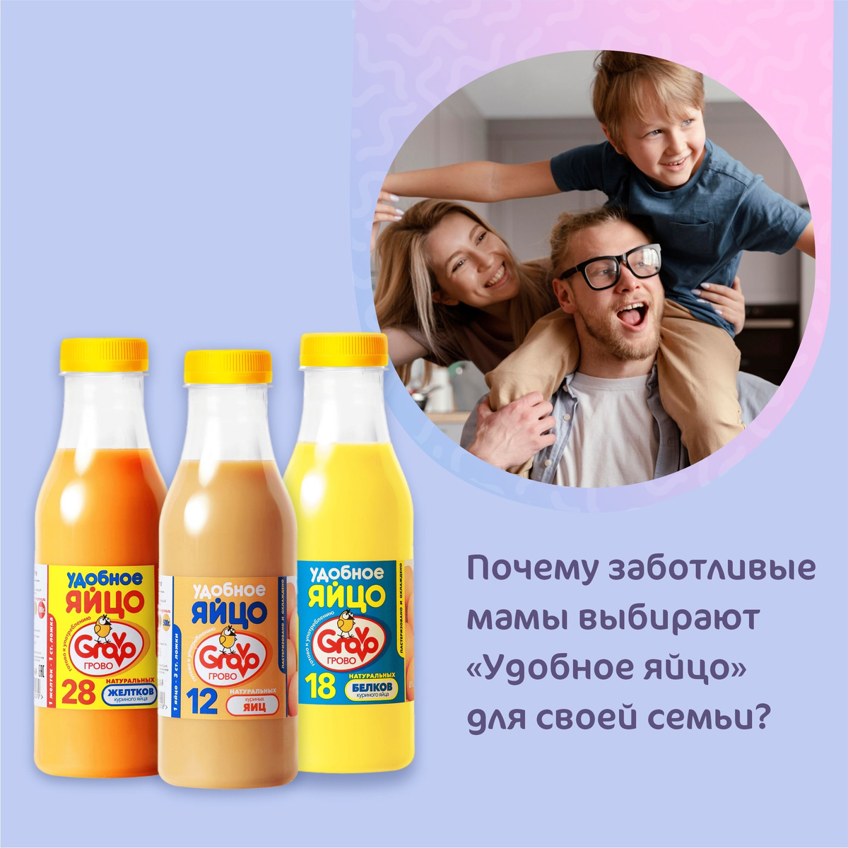 Каждая мама хочет, чтобы ее семья питалась здорово и безопасно. Пастеризованные яйцепродукты "Удобное яйцо" проходят строгую обработку, что исключает риск бактерий. Это значит, что вы можете быть уверены в качестве и безопасности каждого блюда! С "Удобным яйцом" готовить проще и быстрее! Не нужно тратить время на разбивание, очистку и утилизацию скорлупы. Просто налейте нужное количество и готовьте любимые блюда: омлеты, выпечку или соусы — все получится на отлично! С пастеризованными яйцепродуктами вы получаете больше с каждой упаковки. Они долго хранятся, что позволяет сократить количество покупок и избежать порчи продукта. Это идеальный выбор для активных семей! Grovo — это бренд, которому доверяют. Мамы выбирают "Удобное яйцо" за его высокое качество и надежность. Выбирайте пастеризованные жидкие яйцепродукты "Удобное яйцо" от Grovo для своей семьи и наслаждайтесь качеством, которому можно доверять! Попробуйте "Удобное яйцо" уже сегодня и сделайте каждый прием пищи особенным!