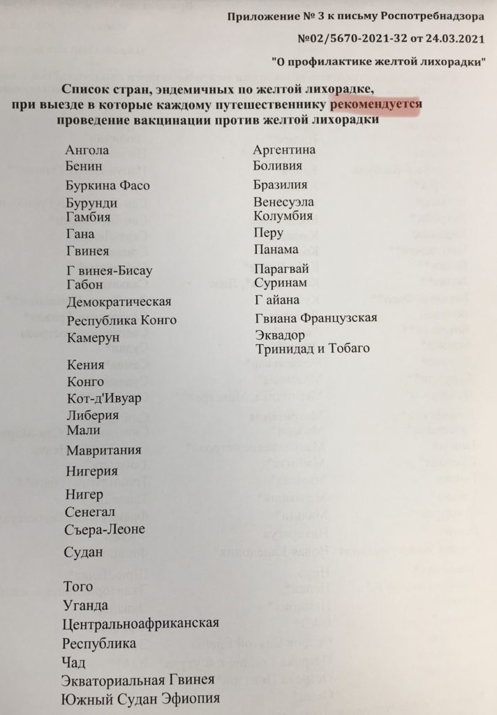 В какие страны рекомендована вакцинация от желтой лихорадки?