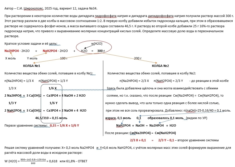 Кислые соли в 34-й задаче от С.И. Широкопояса. Разбираемся