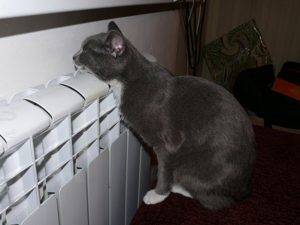 Все котики любят тепло, иногда даже слишком. Когда суровые морозы находят мостики холода в наши дома и квартиры, и температура в комнатах начинает опускается ниже любимых кошачьих отметок (+21..+22 градуса тепла), кошки перемещаются поближе к батареям. А когда столбик комнатного термометра падает ниже +18 – жмутся к батареям вплотную. Потому что ниже +18 для кошек – это уже недостаточно тепло, чтобы лежать на полу кверху пузом. К тому же ближе к полу температура еще ниже, чем показывает термометр, а это вообще непорядок! Ведь у кошек малый рост, они вынуждены регулярно бывать в самой холодной зоне комнаты. Вот и лезут на батарею отогреваться. Лица у них при этом становятся довольные, но потом хозяева иногда замечают пожелтевшие участки шерсти на кошачьих боках. Это результат долгого термического воздействия горячей батареи на кошачью шубку. На батарее кот разогревается постепенно, и сквозь мех не всегда адекватно воспринимает температуру. Если батарея слишком горячая, а кота на ней