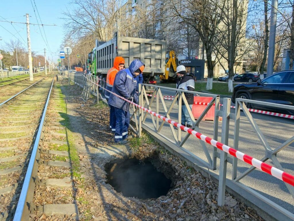 Движение трамваев будет остановлено с 14:00 до 01:00. Кроме того, будет перекрыто движение транспорта по четной стороне дороги по ул. Московской от 66 до 80 дома. По противоположной нечетной стороне дороги организуют реверсивное движение. Как сообщил заместитель главы Краснодара Максима Онищенко в своем Telegram-канале, последствия провала ликвидируют 4 единицы техники и 10 специалистов «Краснодар водоканал», бригады аварийно-восстановительных работ оперативно огородили место обвала. Дорожное покрытие демонтируют, установят крепи для безопасного проведения работ и приступят к ремонту трубопровода. Напомним, очередной провал грунта зафиксировали на улице Московской в Краснодаре. Диаметр провала составил порядка 4 метров. Глубина залегания сети — более 6 метров.