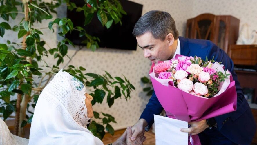 Чиновники с цветами и подарками наведались в гости к вековой юбилярше в Альметьевске