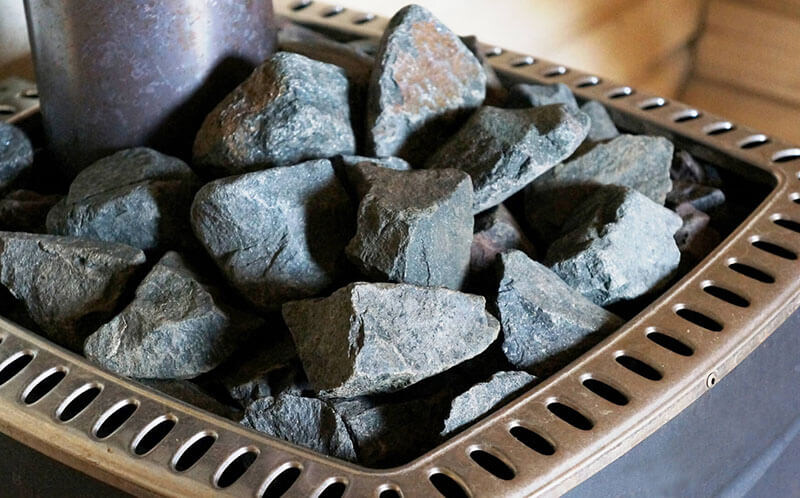 Отличается высокой теплоёмкостью и способностью долго удерживать тепло. Постепенная отработка тепла создает мягкий и приятный пар. Кроме того, он обладает целебными свойствами – и это не маркетинг, эффект действительно наблюдается многими. А именно – минерал имеет тонизирующее свойство. Поэтому, выйдя из парилки, вы почувствуете себя отдохнувшим.