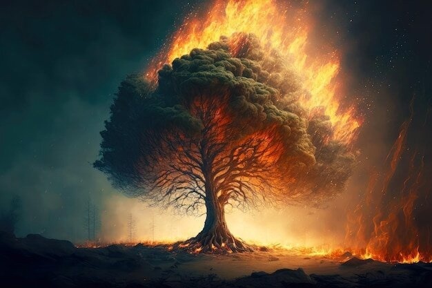Но огонь, все ещё, не замечал дерево( да и все деревья вокруг) - для него это было источник его питания и он хотел сжечь их, восхитив