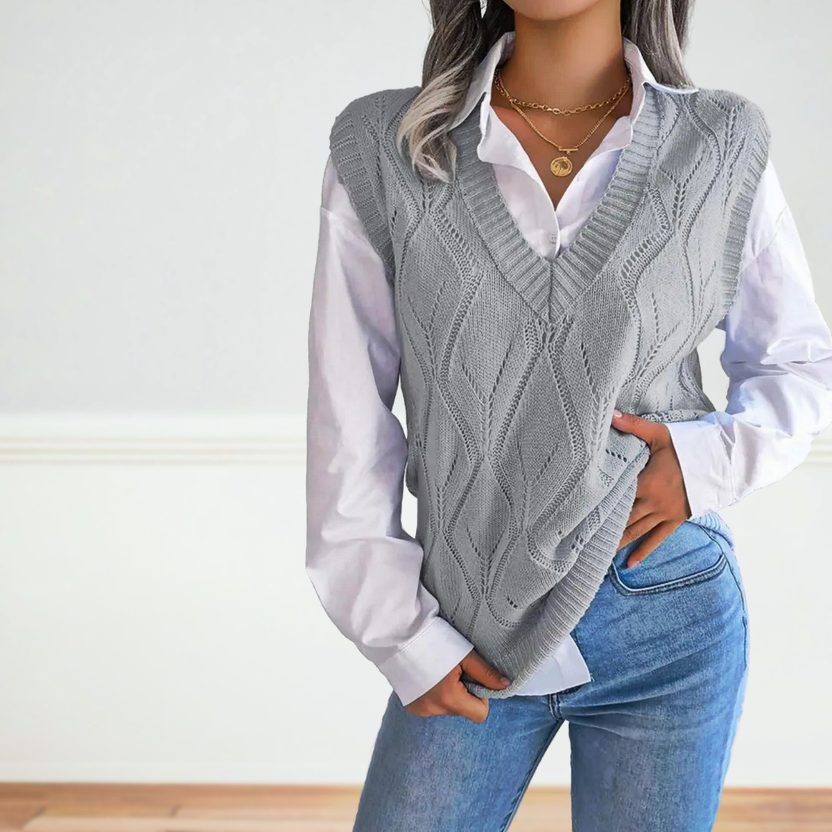 Серый жилет с крупным ромбовидным узором и V-образным вырезом ♥