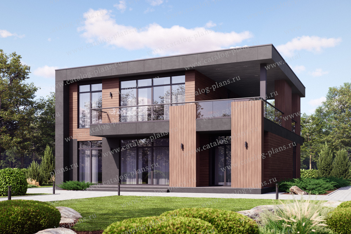 Проект , выполнен в стиле хай-тек с плоской крышей и огромной террасой на втором этаже.