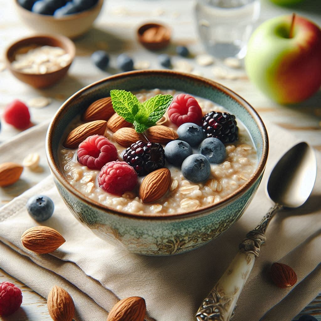 Завтрак: Овсянка на воде с орехами и ягодами.
