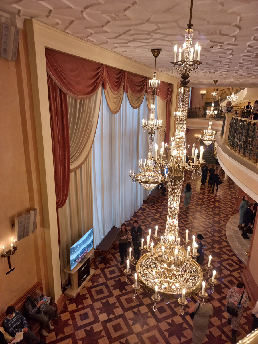 На этот балет мне довольно давно хотелось попасть, так как отзывы о нем читала, в основном, положительные. Так вот и мой тоже будет таковым. Он вряд ли будет полезен тем, кто разбирается в балете. Я не смогу сказать, хороши ли были артисты, насколько искусно они исполняли свои партии. За все время, сколько я хожу на балеты, я лишь один раз смогла заметить, что что-то не так: когда один из танцоров шлепнулся, танцуя в "Клеопатре". Итак, мы с мамой ходили на дневное, а по моим понятиям, даже утреннее, представление в 12 часов. На дневное решили пойти, потому что билеты на него дешевле. Наши, во второй ряд первого яруса, обошлись нам по 2000 рублей каждый. На вечернее представление билеты на те же места стоили по 3000. Вроде бы и небольшая разница, но... На следующие выходные мы взяли билеты на еще один балет, тоже на день, то есть за 4 уже билета получается общая экономия 4000. Это еще можно по билетику купить. Пришли мы заранее, взяли в буфете чаю с пироженками, посидели пообщались. Зат