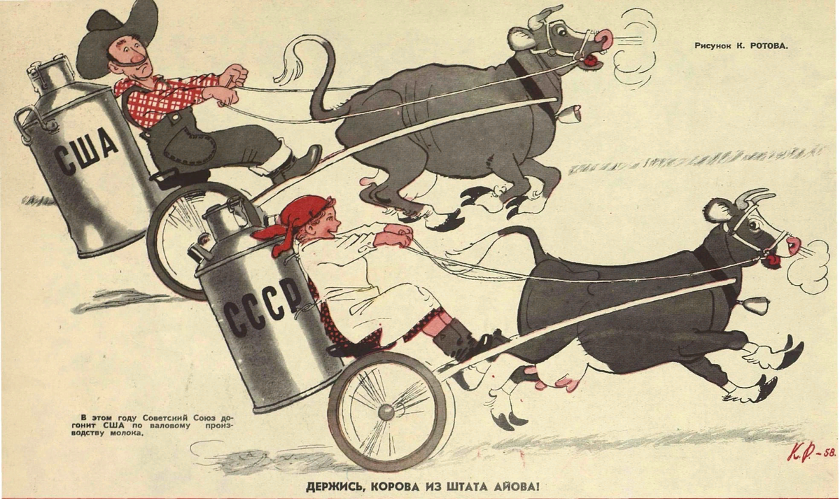 Копаюсь тут в истории того как мы обгоняли Америку по мясу и молоку, и понимаю, что даже большая трагедия, которой стало выполнение Рязанской областью трех планов по мясозаготовкам, может повториться в виде трагикомедии. Видимо, председателю колхоза «Вперед» Рузского района Цуриченко тоже очень хотелось стать если не Героем Соцтруда как секретарь Рязанского обкома Ларионов, то хотя бы орденоносцем. Поэтому, почитав в газетах, как Рязанская область лихо справилась с тремя планами по мясозаготовкам, Цуриченко тоже надавил на своих подчиненных колхозников и на общем собрании, «вопреки мнению членов колхоза», сельхозартель «Вперед» взяла на себя обязательства выполнить за 1960 год «три годовых плана по мясу и два – по молоку». Как товарищ Цуриченко выполнял взятые на себя обязательства?! С молоком проблема решилась проще всего. Председатель просто: «закупил 62,5 т молока по розничным ценам и оформил его как продажу государству по закупочным ценам» То, что колхоз на этом потерял уйму денег,