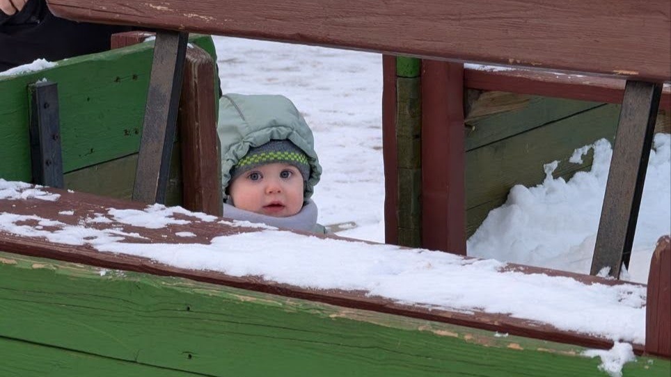Замечательно попасть в зимнее время, когда один размер комбинезона уже мал, а следущий ещё велик. Измерять рост уже не так просто: попробуй поставь его ровно к ростомеру спиной.