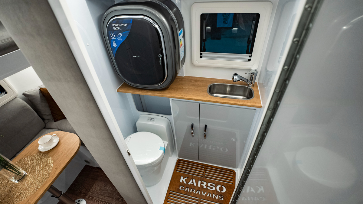 - Просторный KARSO Caravans позволяет разместиться всей компанией и иметь все удобства в одном месте.