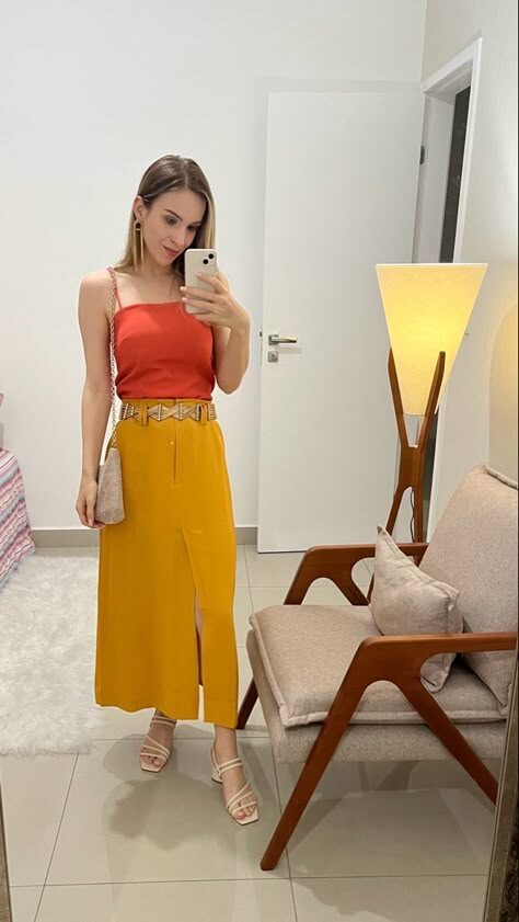 Вот оно: сочетание горчицы и кетчупа. Хотя этот наряд кажется довольно простым, если присмотреться, в нем есть нечто большее, чем может показаться на первый взгляд.