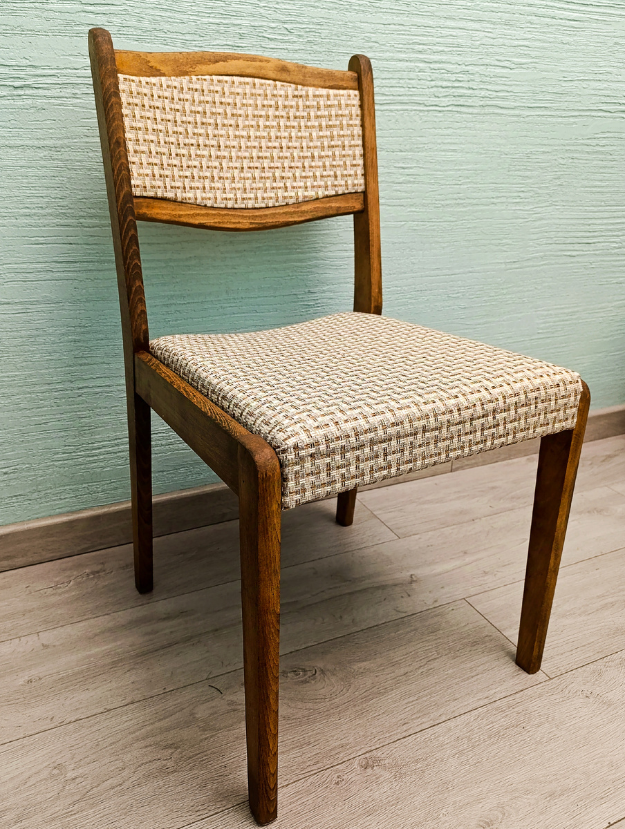 Добрый день уважаемые подписчики и все остальные, кто интересуется тематикой моего канала. Сегодня хочу поделится с вами своим опытом ремонта старого стула, который изначально хотели выкинуть. Ремонт старой мебели дело кропотливое и затратное скажете вы и будете абсолютно правы. Конечно будет дешевле приобрести новое. Но вопрос в следующем, а сколько по времени прослужит это новое, как долго сохранит свой внешний вид? Качество современной мебели мягко сказать оставляет желать лучшего, а старая проверенная временем мебель при должном уходе служит десятилетиями. Вот и мне стало жалко выбрасывать этот стул, который так долго служил «верой и правдой». Тем более некоторые материалы необходимые для восстановления стула у меня уже были. В магазине пришлось купить 1 метр мебельной ткани рогожку, модель ПОРТУ, бежевого цвета. Клей аэрозольный в баллончике, и плотный картон 2 мм для тыльной стороны спинки. Работу по восстановлению начал с частичного разбора стула. Почему частичного потому, что