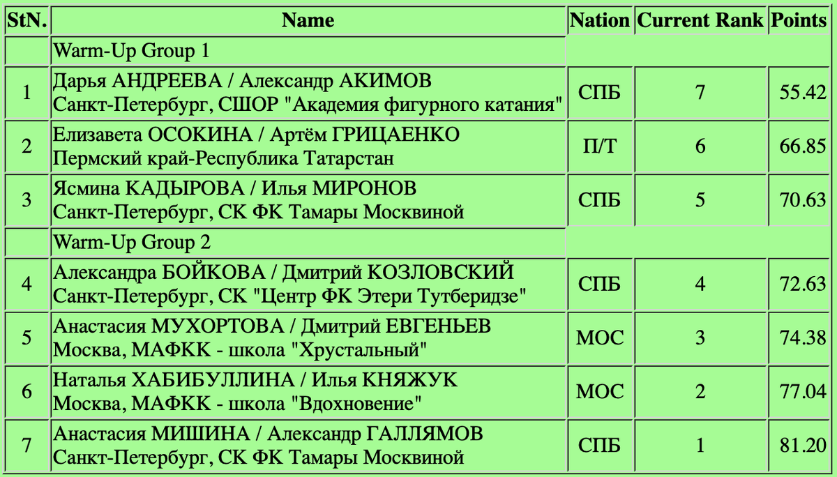 Баллы первого дня и порядок выхода спортсменов на лёд: