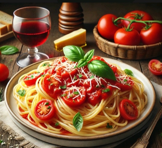Приготовила сегодня классическую пасту с томатами. Всё просто, но вкус потрясающий! Обжарила на оливковом масле пару зубчиков чеснока, добавила спелые томаты, немного уварила, приправила солью, перцем и щепоткой сахара. Пока соус томился, отварила пасту до состояния аль денте. Смешала всё вместе, добавила свежий базилик и немного тёртого пармезана. Получилось ароматно и очень вкусно!