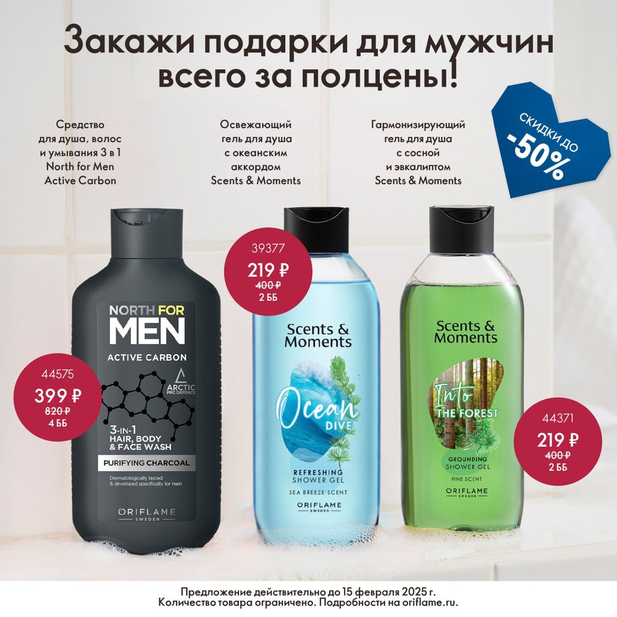 😁😁😁😁😁😁😁 Порадуйте приятным и полезным подарком, который не только тщательно очистит кожу, но и наполнит день свежим, бодрящим ароматом. Эти гели для душа не только бережно ухаживают, но и поднимают настроение, создавая атмосферу комфорта и заботы. 44575 Средство для душа, волос и умывания 3 в 1 North for Men Active Carbon, 250мл Удобно и эффективно: средство для душа 3 в 1. Мощная формула с активным углём, антиоксидантным комплексом Arctic Pro Defence и провитамином В5 очищает, укрепляет, питает и защищает кожу и волосы. 39377 Освежающий гель для душа с океанским аккордом Scents & Moments, 250мл Этот гель для душа подарит тебе чувство погружения в океанские воды. Он также бережно очищает и освежает кожу. 44371 Гармонизирующий гель для душа с сосной и эвкалиптом Scents & Moments, 250мл Каждая бутылочка Scents & Moments вмещает целый мир, в который можно погружаться снова и снова. Ссылка на регистрацию👇👇👇