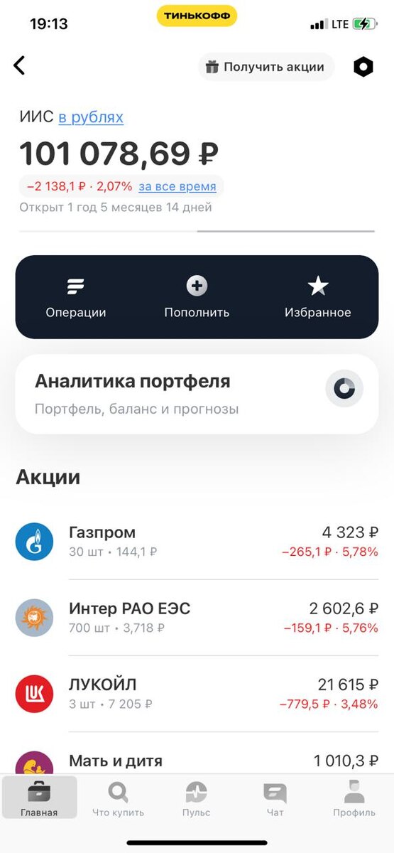 Что то давненько я не рассказывал о портфеле своей жены, на то были свои причины: мой больничный, отсутствие зарплаты и т.д. Жена сама занимается пополнением очень редко и в крайне малых размерах, но справедливости ради, стоит отметить, что её зарплата не такая большая. Сегодня я получил зарплату, и жена перевела на свой счёт 2500 рублей, одно из редких пополнений. Это самое пополнение помогло портфелю достигнуть отметки в 100000 рублей. Конечно, с точки зрения инвестиций сумма достаточно скромная, но всё же это достижение, которое нельзя не заметить. Я просто приложу скрины с её портфеля и вы сами увидите все активы, которые находятся в нём, ну а на сегодняшнее пополнение я приобрёл в портфель жены акции Северсталь, Транснефть и татнефть. Как вы можете заметить в портфеле жены мы тоже держим исключительно акции, и в общем также придерживаемся дивидендной стратегии как и в моём ИИС. Я думаю, что буду идти к тому, чтобы наши портфели были на 99% одинаковыми, так будет легче прид