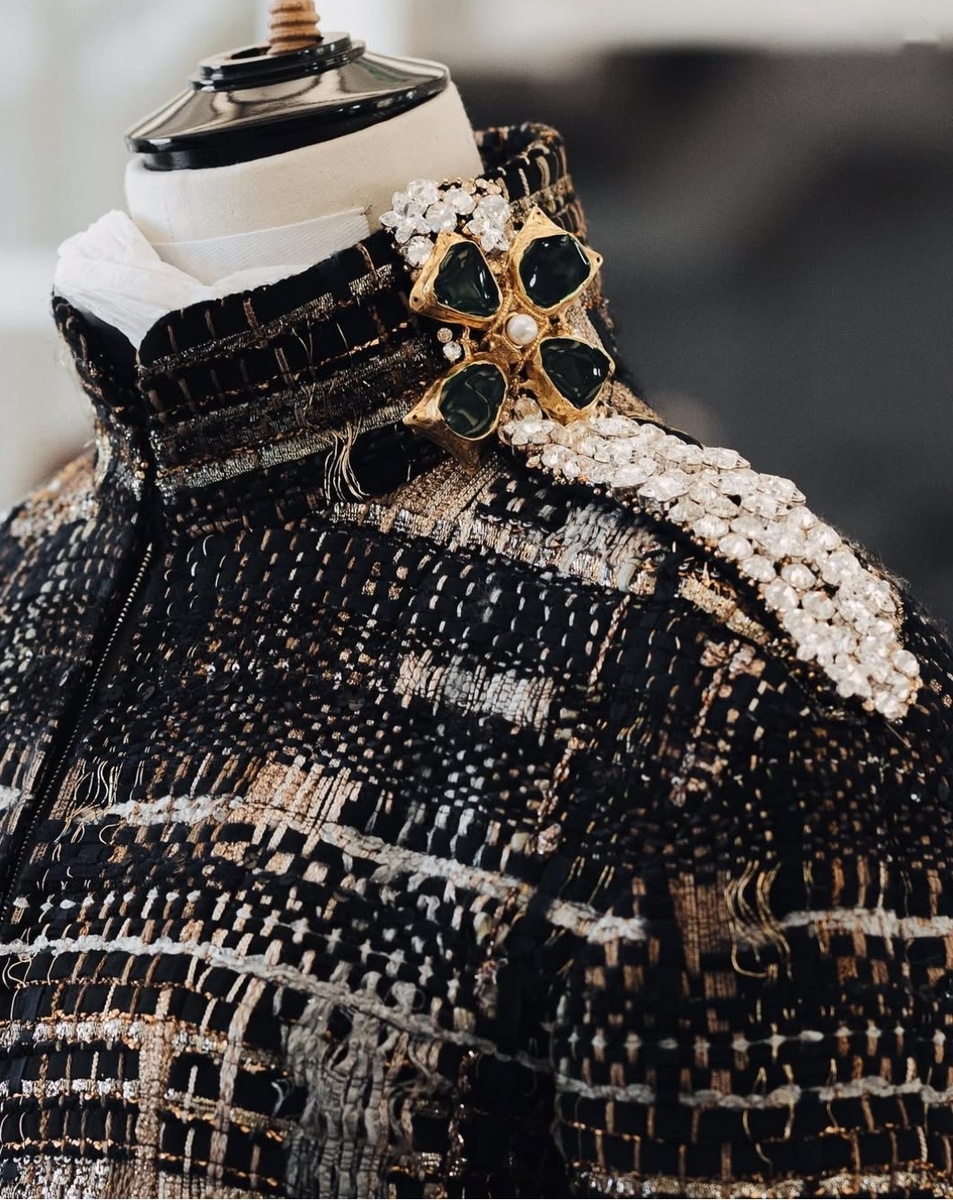 Моя жизнь уже не будет прежней. День, когда я увидела детальные фото и видео создания ткани, убедил меня, что нет смысла ходить в магазин за тканью Шанель Ну, ладно. Слегка преувеличиваю. Но только слегка. Уверена, после увиденного вы тоже будете смотреть на то, что продается под названием "ткань Шанель" совсем другими глазами От качества и структуры нитей можно потерять покой Примечательно, что в моделях на подиуме всего этого не разглядеть Издалека вся сложность состава смотрится чем-то простеньким На самом деле это просто феерия текстур А теперь представьте, все это великолепие создается вручную Для этого используются специальные станки, совершенно не похожие на привычные ткацкие Удивительная форма которых Больше похожа на орган, трубочки которого надо переключать перед протягиванием каждой нити за счет этого получается причудливое переплетение В результате разработки узора создаются схемы Формируется что-то типа перфокарты И уже на больших станках набирается полотно бОльшей ширин