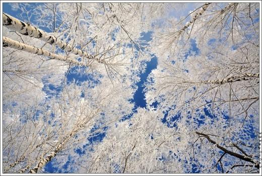 Зима неожиданно немножко решила заявить о себе. Я проснулась сегодня утром, а там такая красота. За ночь все деревья, что кружево вологодское. Снега нет почти, небо голубое - а на его фоне кружево - ни одной темной веточки. Стоишь, моргаешь и - ох, аж дух захватывает.