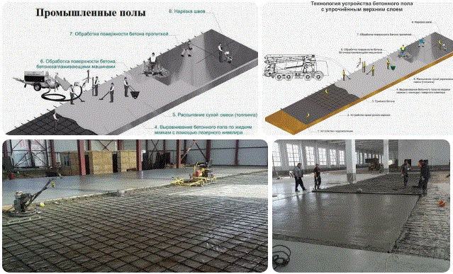 Под понятием промышленный пол, понимается, что это полы любого нежилого помещения, такого как полы на всевозможных предприятиях, полы на складе, полы в торговых центрах и других местах общего пользования, полы на всевозможных рабочих зонах. Основными требованиями является то, что полы должны быть высокого качества и при этом не должно допускаться активное пылеобразование при хождении и передвижении оборудования по полу. И еще немаловажный факт, полы должны быть абсолютно ровными. Это основные требования по технике безопасности.