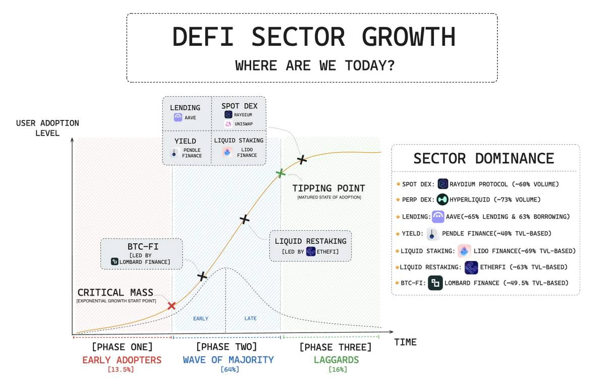 Основная цель DeFi — устранить неэффективность традиционных финансов с помощью инновационных и эффективных систем. Эти решения продемонстрировали значительную степень соответствия продукта рынку (PMF) во многих секторах.