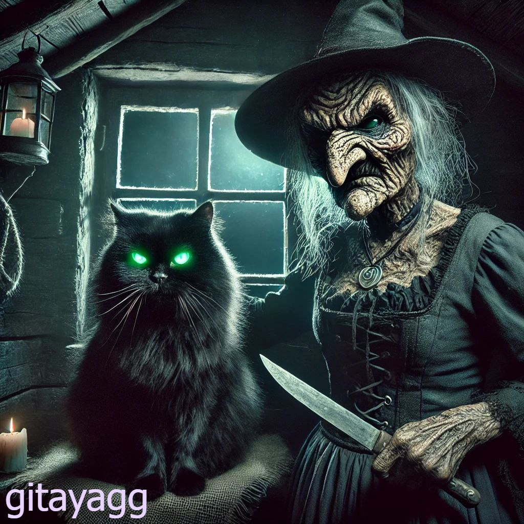 Но это был всего лишь необычайно большой чёрный кот, нёсший в лапах вязанку дров.