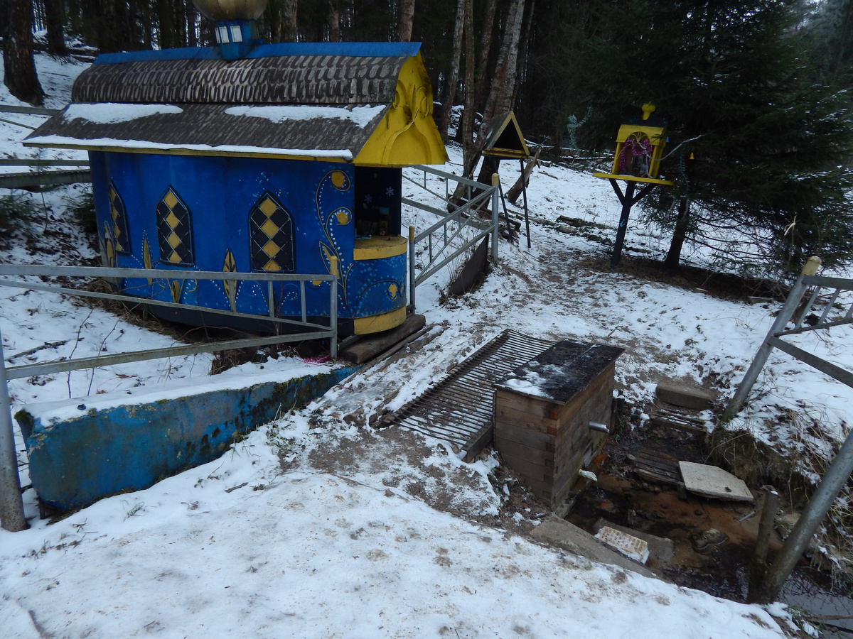 1 родник - с часовней. С него начинается постоянное русло лесного ручья. А вот сезонное идёт до Юдино и разливается обычно только весной. Обычно... В этом году в январе разлилось, правда, ненадолго, вернулись морозы и прижучили аномалию. Судьба у него не простая. Раньше была только одна труба, верхняя, а часовни не было. Потом сделали часовню. Потом добавили нижнюю трубу. Потом этим летом верхняя труба стала пересыхать, пока этой зимой не пересохла совсем, а нижняя продолжает работать. Вот только нижняя труба, хоть там вода и получше на вкус, она более фильтрованная грунтом, весной затапливается половодьем. Но не всегда. Этой весной из-за того, что снега мало, затопление нижней трубы маловероятной. В прошлом этот родник большие очереди желающих заправиться водичкой собирал, сейчас его популярность упала, набирают в нём воду редко.