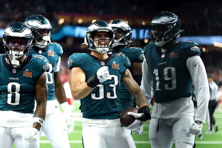 17 из 40 очков «Филадельфии» запишите на ее защиту – пик-сикс Купера Дежина (кого-то вообще жизнь готовила к белым корнербекам, разваливающим в Супербоуле?!) и два коротких поля после перехвата и фамбла Махоумса.