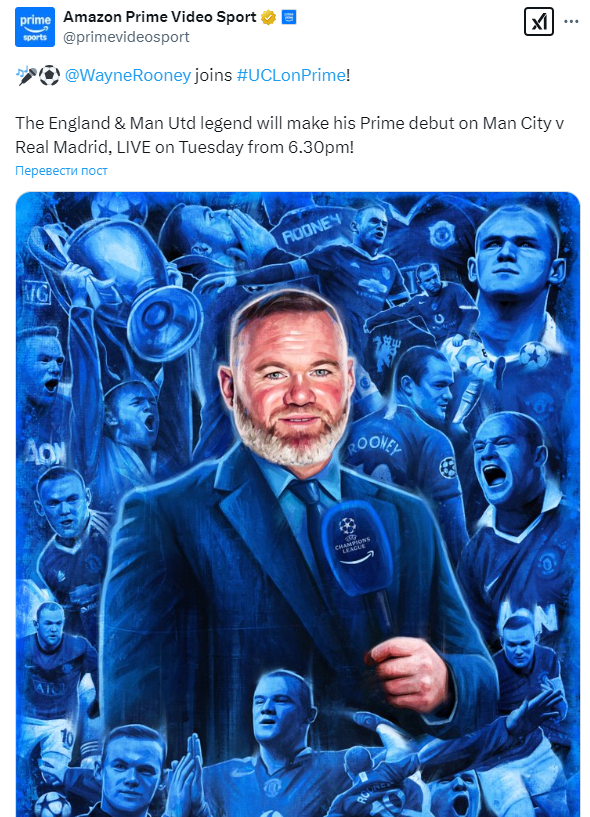 Четыре года назад легенда «Манчестер Юнайтед» Уэйн Руни завершил игровую и начал самостоятельную тренерскую карьеру. Сперва он стал исполняющим обязанности коуча «Дерби», а затем подписал контракт на постоянной основе. Руни не смог удержать команду в Чемпионшипе и его уволили до истечения действия договора. После были «Ди Си Юнайтед» из МЛС, «Бирмингем» и «Плимут». В последнем Уэйн продержался чуть более полугода и ушел, когда клуб оказался последним во втором английском дивизионе с отрывом от предпоследней строки в четыре очка. С 31 декабря 2024-го Уэйн Руни был без работы, а его отправляли в другие команды низших лиг. Похоже, что пока англичанин решил заняться тем, что у него получается лучше, чем тренировать. Сегодня Amazon Prime сообщил о подписании договора с экс-форвардом и о том, что он начнет работу матчем между «Мадридом» и «Ман Сити» в Лиге чемпионов. Последние полгода Уэйн Руни был частым гостем подкаста The Overlap, где с ним дискутировали Гари Невилл, Иан Райт, Рой Кин и д