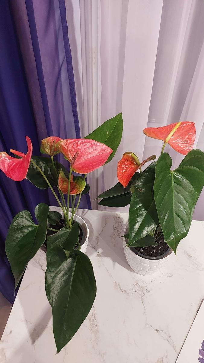 Многие ждут годами, чтобы их антуриумы зацвели, а оказалось все намного проще, всего лишь 2 "помощника" и антуриум будет радовать вас цветением круглый год. Цветок антуриум - вечнозеленый представитель класса ароидные. Антуриум это комнатное растение родом из Южной Америки и насчитывает более 600 видов. Цветы антуриума бывают разных цветов, таких как привычные красные, белые, розовые, оранжевые, фиолетовые. Антуриум - родом из тропических лесов с жарким влажным климатом. В условиях, схожих с естественными, он может цвести с мая по октябрь, однако ухаживать за ним не так просто. Однако, если у антуриума будет правильно подобран грунт, если его не переливать, то растение будет радовать вас своим красивым видом. Итак, полив своих антуриумов я осуществляю раз в 1-1,5 недели, в зависимости от времени года ( зимой реже, летом чаще). Также я делаю с помощью полива и подкормки. Долгое время я их подкармливала магазинными подкормками для декоративно-лиственных, для цветущих растений, но толку