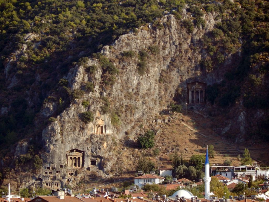 Прямо над Фетхие, в скалах, вырублены древние ликийские гробницы. Ликия, союз городов-государств, контролировал юго-запад современной Турции. Одна из интересных черт Ликии - культ помпезных гробниц, вырубленных в скалах или, в более раннем варианте, построенных в виде каменных домиков-скворечников. Над городом нависает величественная гробница царя Аминтаса (350 г. до н. э.), рядом примостились ещё несколько захоронений.